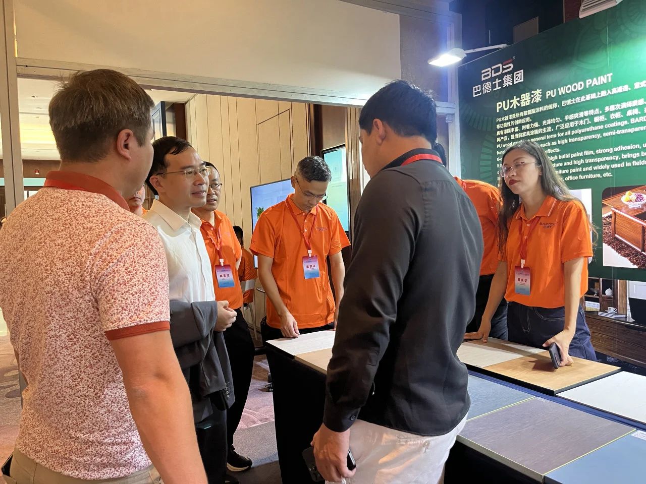 巴德士集团作为本次大会的重要参展商之一,为大家带来了多款水性木器漆、净味UV漆、功能性PU漆、家具艺术漆以及木器粉末涂料等环保涂装产品,这些产品不仅符合国内外严格的环保标准,还凭借其优异的性能和丰富的涂装效果赢得了现场观众的高度关注。