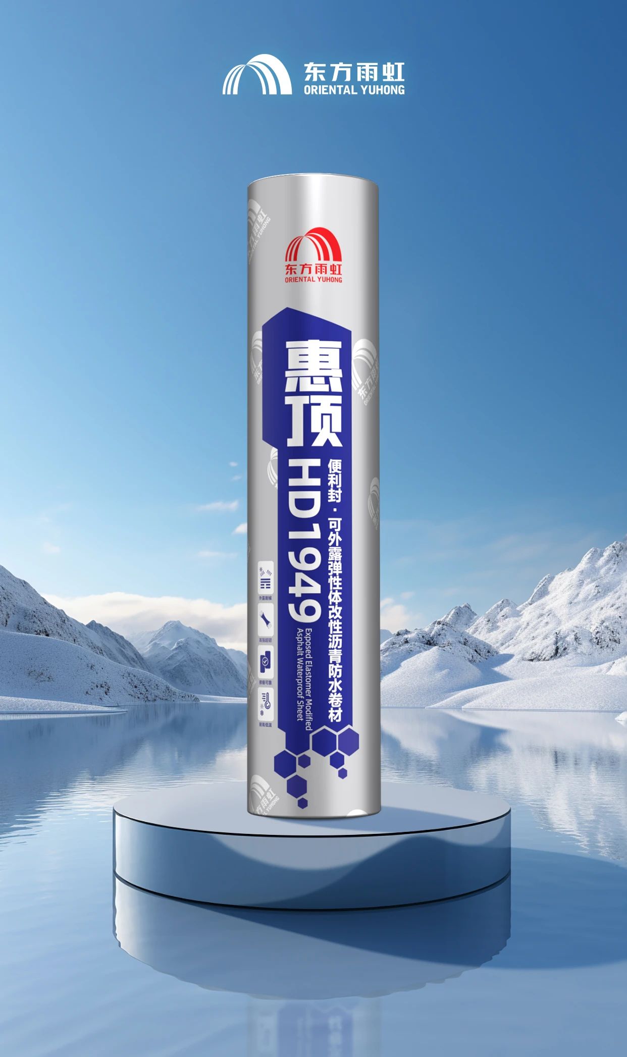 HD1949采用特制抗老化超耐候聚乙烯膜,搭配优质SBS改性剂,可有效提高产品整体耐老化性能,力学性能优,耐候效果佳。