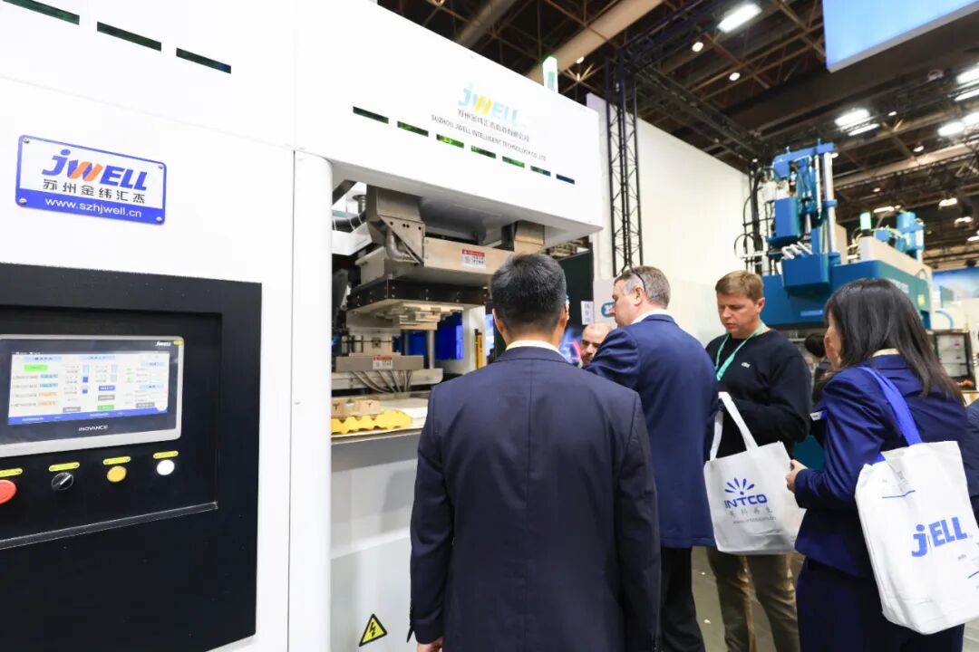 K2025,金纬16D41展位,金纬汇杰带来的这台全自动纸浆模塑一体机现场开机展示吸引大量客户驻足。金纬汇杰副总经理梁萧介绍道,该设备在国内市场处于领先地位,已与罗马尼亚、比利时等多国企业达成合作;我们还针对欧洲客户需求,优化了结构设计与材料选择,提升机架刚性,采用一体式、模块化设计,适配小批量、多品种柔性生产。金纬汇杰凭借实力过人的技术方案和以客户为中心的服务理念获得多国客户认可,并邀请金纬汇杰团队展会后赴企业洽谈合作。