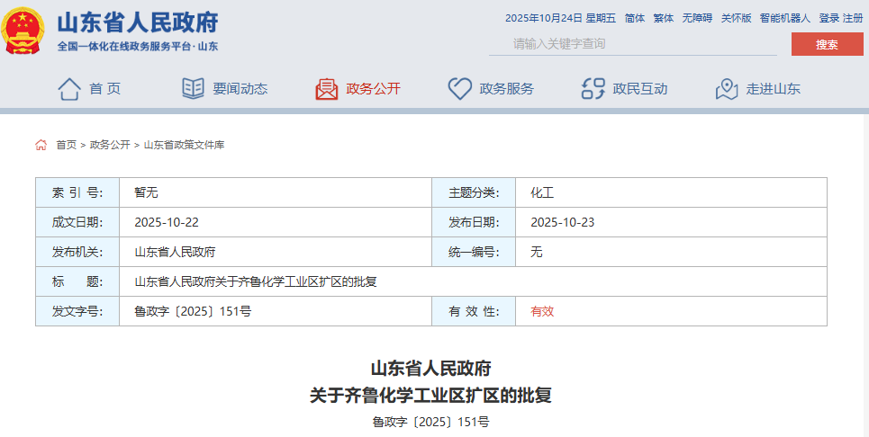 山东省又有4家化工园区扩区调区