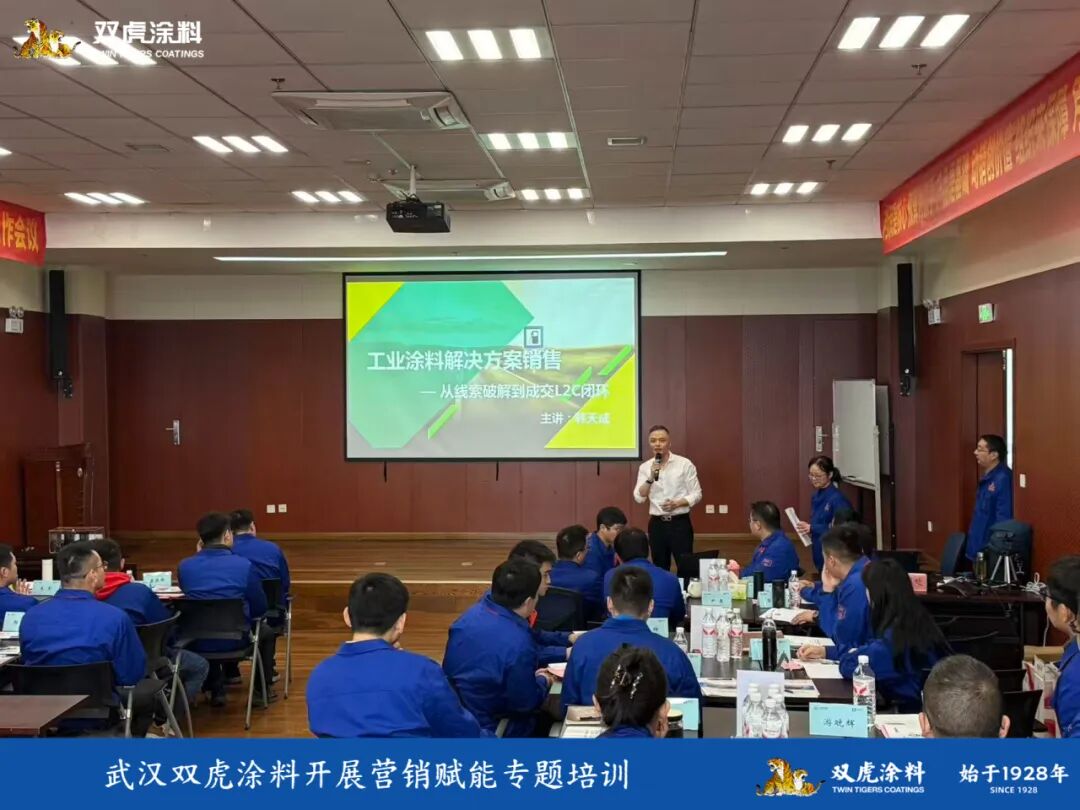 慧正资讯,为进一步对营销体系赋能,提升团队协同作战能力,统一思想、凝聚共识,打造一支“能打硬仗、敢拼业绩”的狼性铁军,11月8日—9日,双虎涂料组织开展了为期两天的L2C营销赋能课程培训,从产品知识到客户管理,从谈判技巧到数据分析,全体销售精英以空杯心态投入学习,为达成全年指标积蓄能量!董事长宋俊、总经理李建文及全体营销人员共计50余人参加培训。