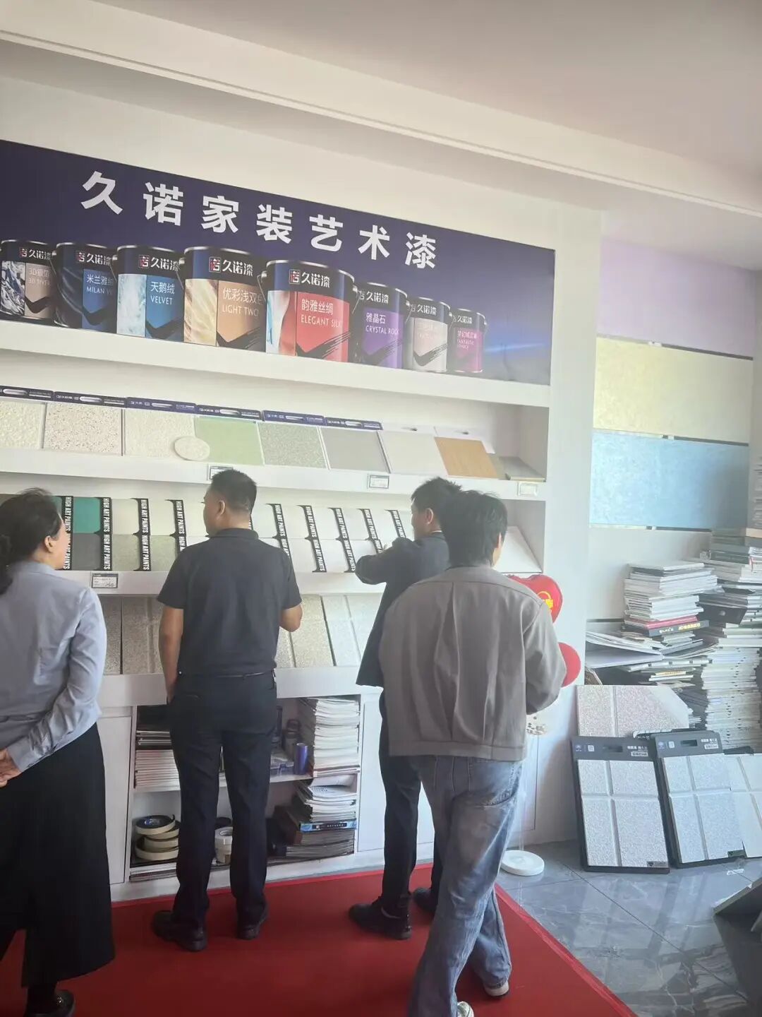 同时,久诺总部团队亲临现场专业赋能,带来精打细磨的超耐久仿石漆工艺样板,以卓越的清晰度、仿真度,精准还原天然石材的纹理与光泽,在终端市场形成差异化竞争力,成功吸引了众多客户。