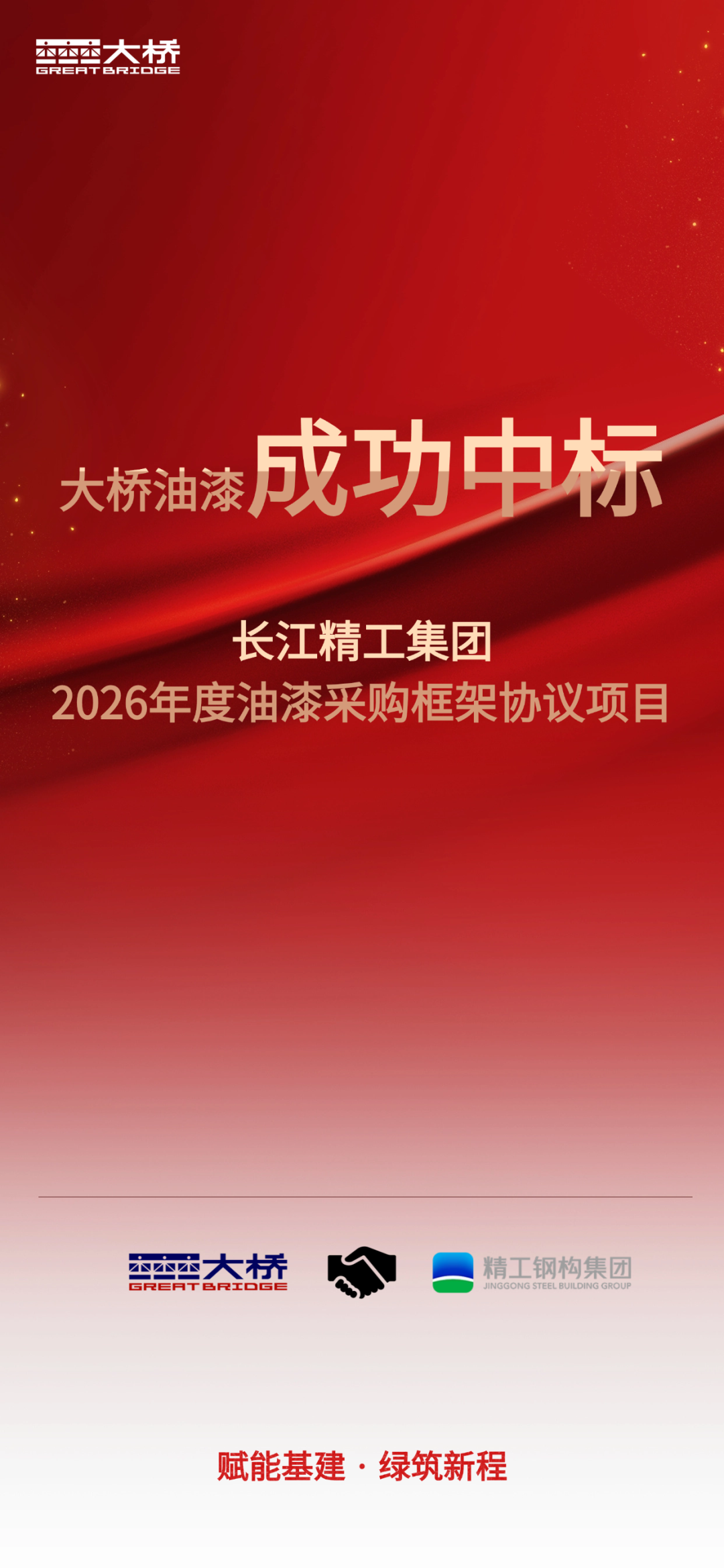 慧正资讯,近日,大桥油漆凭借卓越的产品品质、优质的服务体系和良好的企业信誉以及极具竞争力的综合方案, 成功中标长江精工钢构集团2026年度油漆采购框架协议项目。这一成果不仅是大桥油漆在工业涂料领域实力的硬核印证,更是其持续赋能重大基建项目、助力建筑行业绿色高质量发展的重要里程碑。