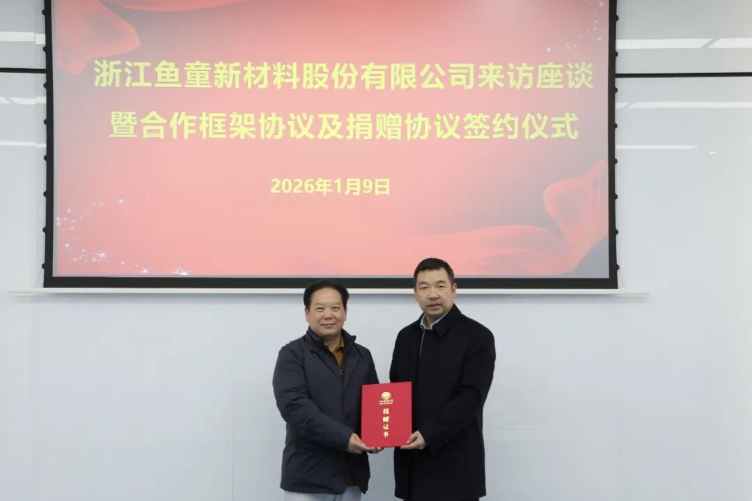 慧正资讯,2026年1月9日,浙江鱼童新材料股份有限公司董事长梁新方率领公司高层团队访问上海海事大学,双方举行座谈并成功签署合作框架协议及捐赠协议,开启校企合作新篇章。