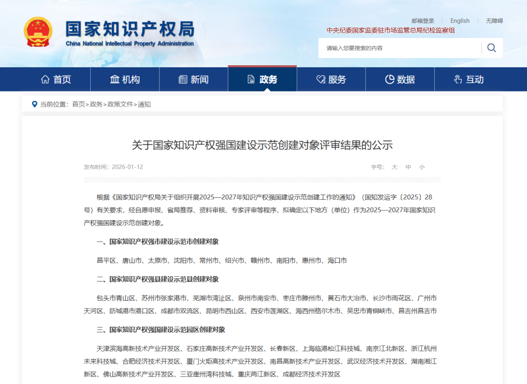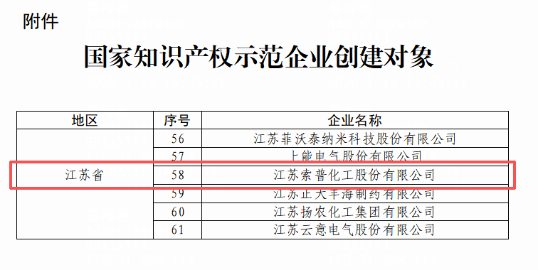 慧正资讯,近日,国家知识产权局公示2025—2027年国家知识产权强国建设示范创建对象评审结果,索普股份凭借在知识产权创造、运用、保护与管理领域的卓越表现,经多轮严格评审,成功入选首批名单。