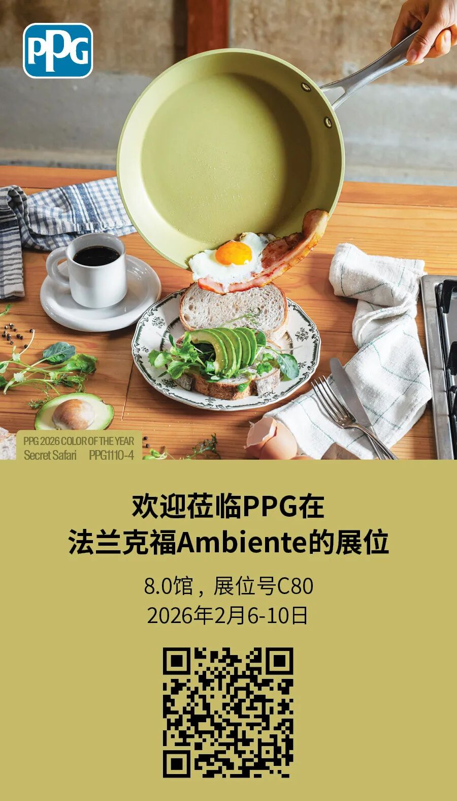 慧正资讯,PPG将于2026年2月6日至10日在法兰克福Ambiente消费品展览会上,展示其针对厨房炊具研发的两款新型不粘涂层产品。