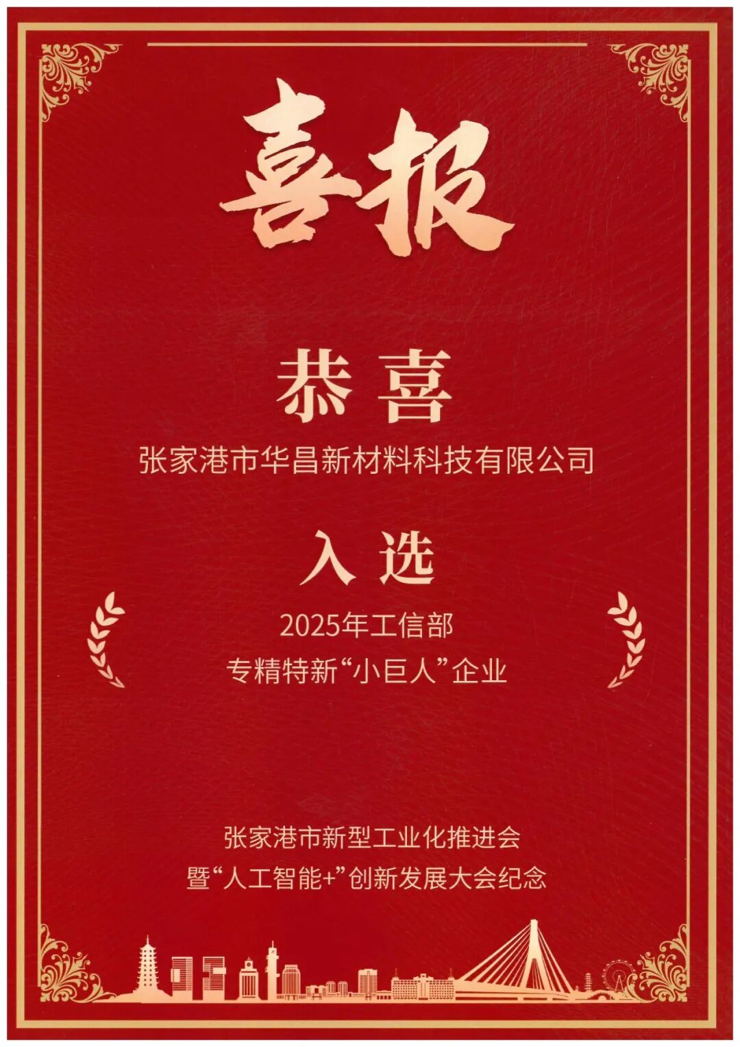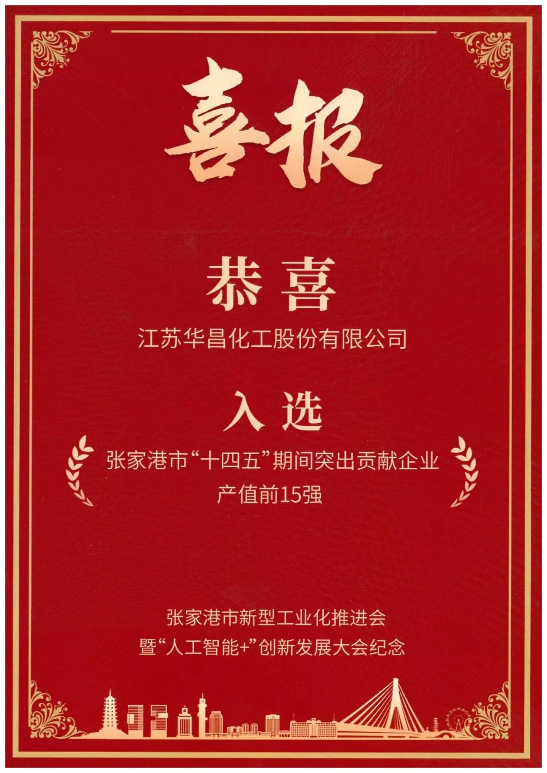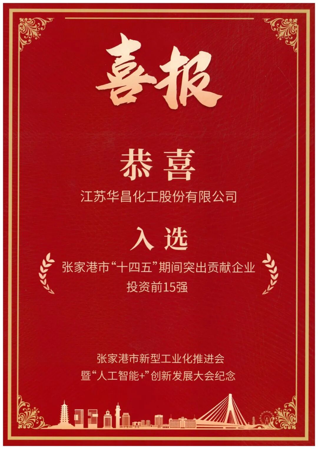 慧正资讯,1月5日,张家港市召开2026年新型工业化推进会暨“人工智能+”创新发展大会。会议表彰了一批优秀企业,华昌化工凭借卓越表现,成功入围“十四五”期间张家港制造业企业产值、投资双15强企业。华昌新材料凭借入选2025年工信部特精专新“小巨人”企业荣获市级表彰。