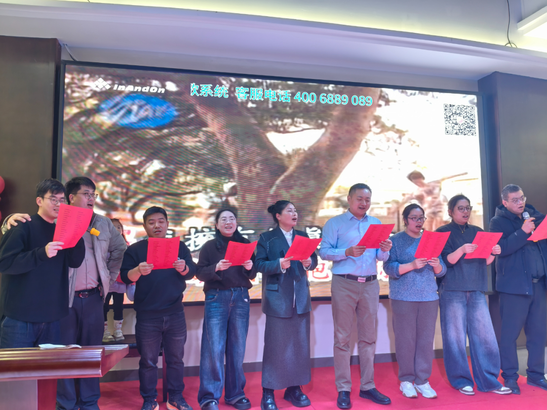 总结表彰大会结束后,公司举办了答谢晚宴,邀请了员工家属一起联欢,晚宴期间还举办了丰富的文娱节目,曾超总经理携管理团队一曲《明天会更好》把晚会推向高潮。