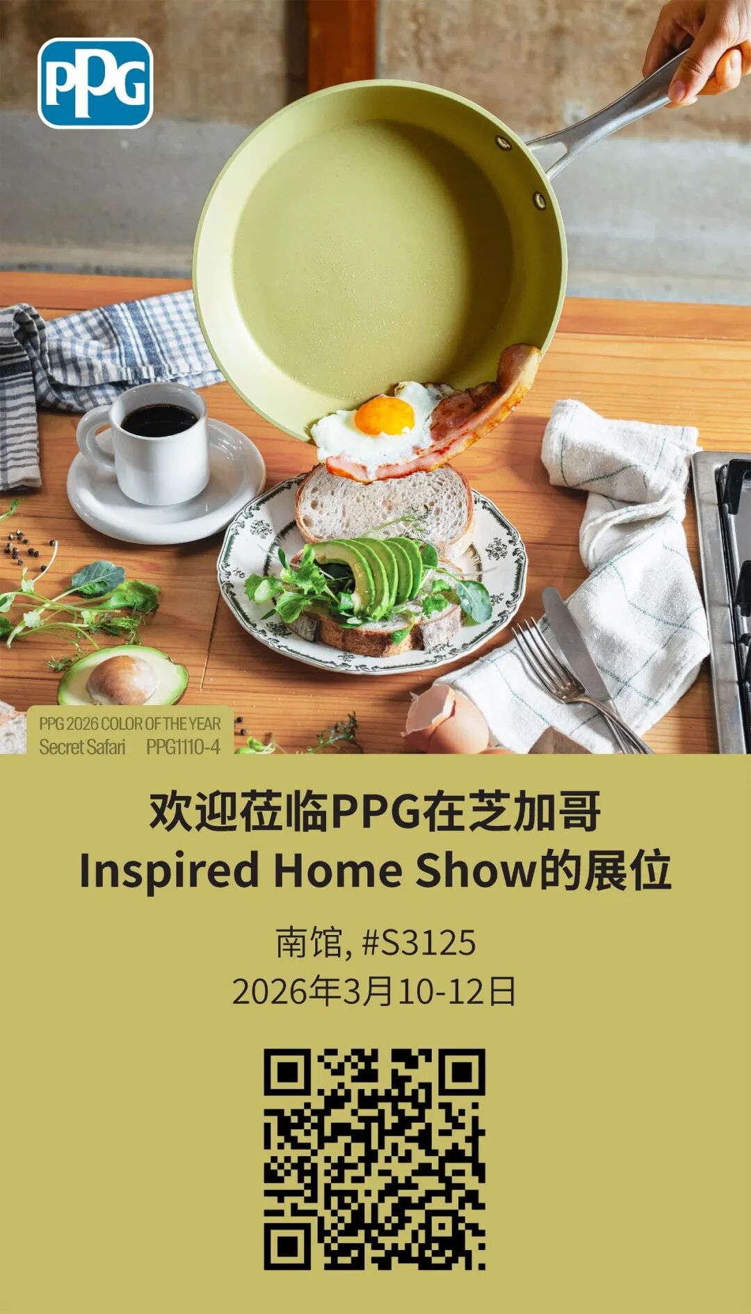 慧正资讯,PPG将在2026年3月10日至12日于芝加哥举办的Inspired Home Show上,展示其不粘涂料领域的最新产品与技术成果。展位位于南馆S3125,届时参观者可现场体验PPG 2026厨房用品年度色彩,并了解多款不含PFAS的不粘涂料解决方案。