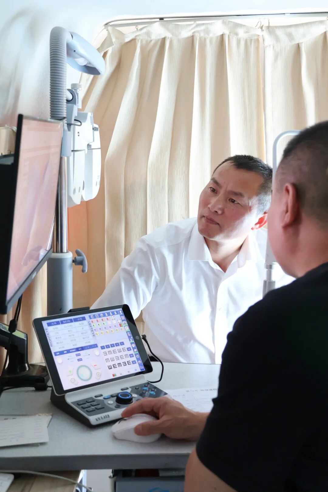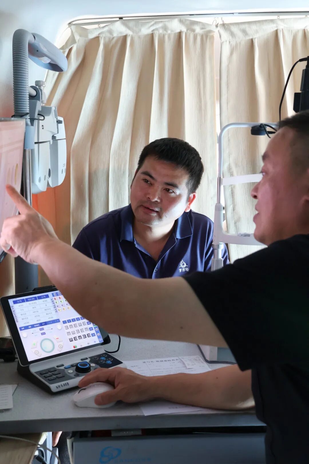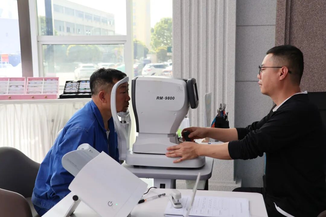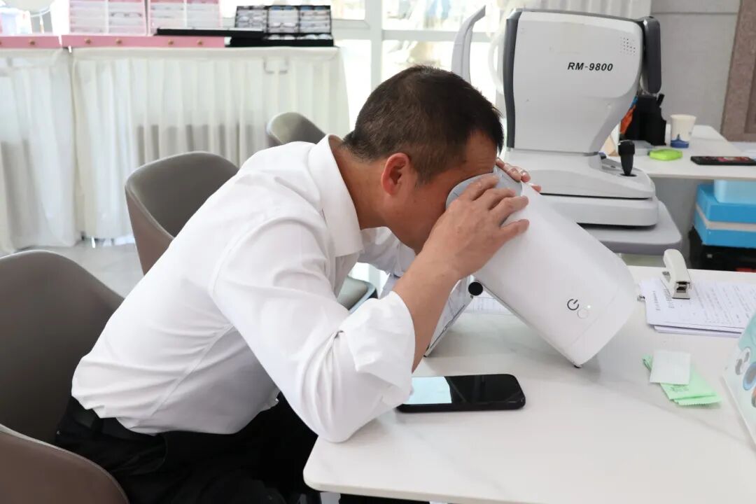 巨龙光学携带先进的AI智能眼底照相机、数码裂隙灯、验光仪等设备,为罗浮塔涂料员工提供一站式眼健康服务,全程细致周到、有条不紊。