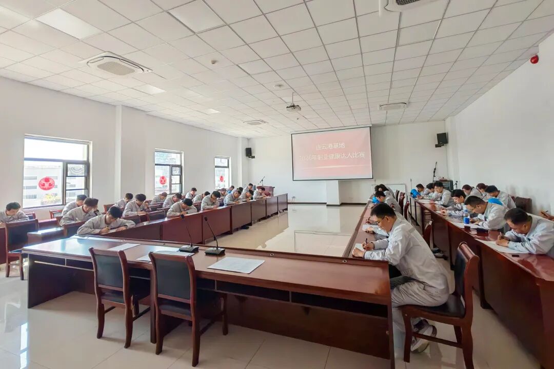 评选设置身体素质测试、操作技能比武、自救互救及理论知识笔试等环节,涵盖跳绳、空气呼吸器穿戴、心肺复苏等项目。以本次评比为契机,连云港基地同步启动为期100天的“三减一加一达”(减盐、减油、减糖,加强锻炼,达到健康体重)全员健康促进活动,号召全体员工养成良好习惯,切实提升健康素养与体质水平。