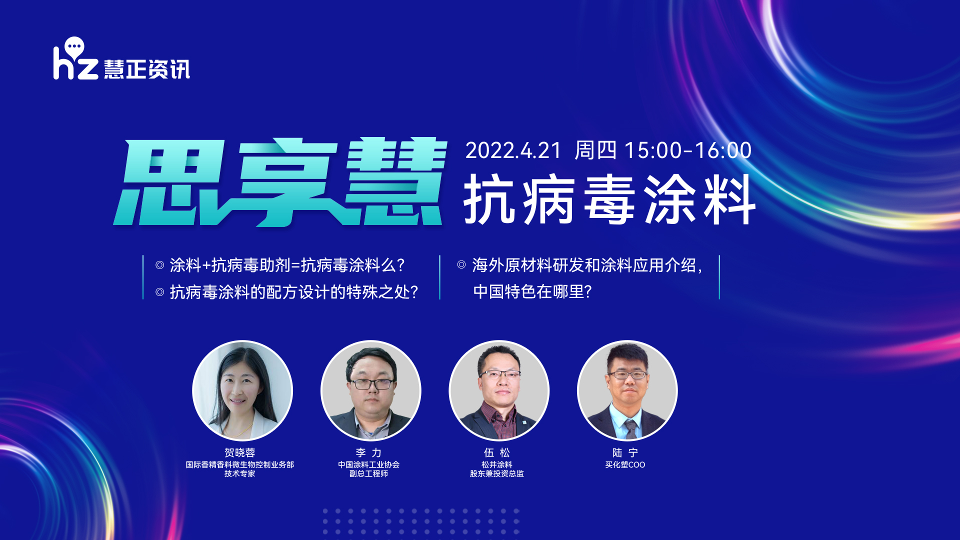4月19日,慧正资讯《思享慧 – 抗病毒涂料》上线连麦。