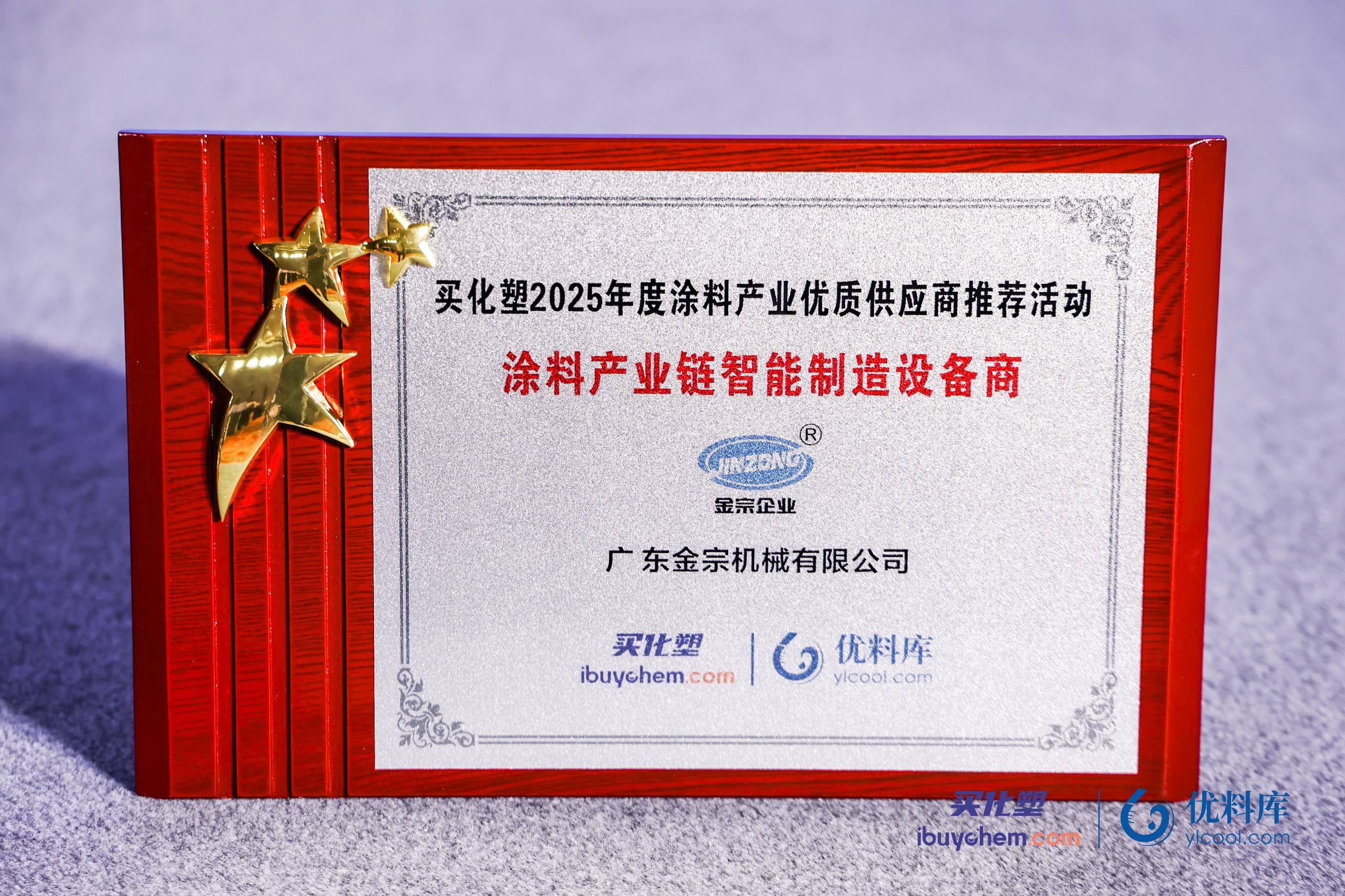 金宗企业荣膺“2025年度涂料产业链智能制造设备商”大奖