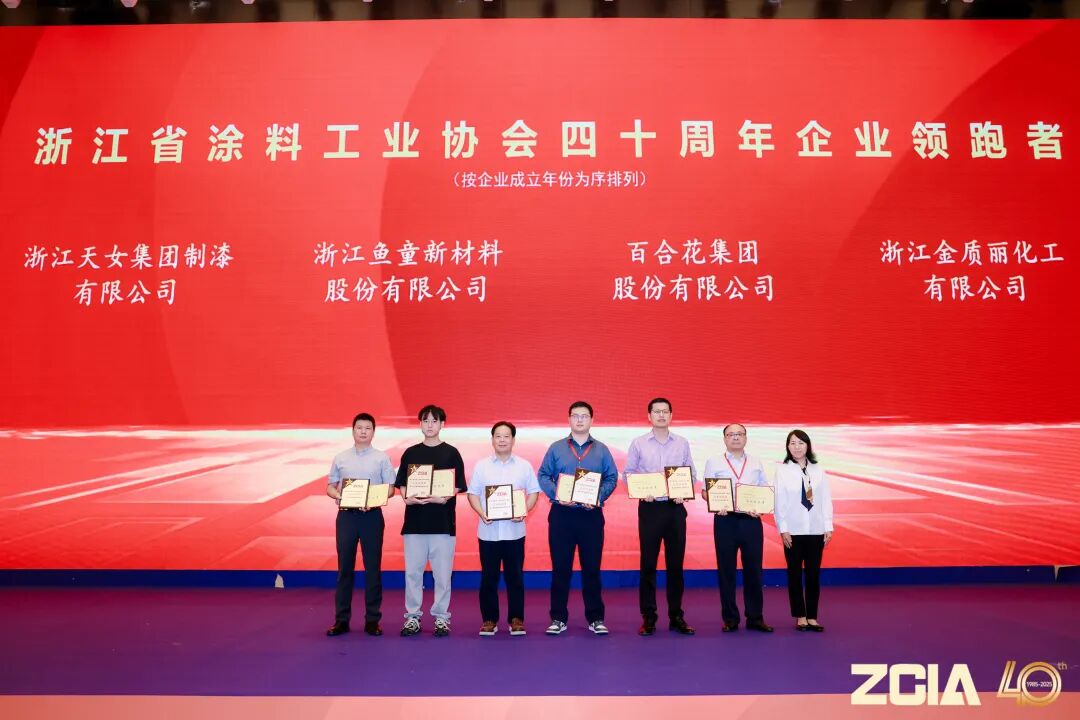 2025 年 9 月 25 日, 浙江省涂料工业协会八届四次会员大会暨协会成立四十周年庆典在杭州白金汉爵大酒店隆重举行。浙江鱼童新材料股份有限公司被评为浙江省涂料工业行业四十周年企业领跑者。梁新方董事长被评为浙江省涂料工业行业功勋涂料人。