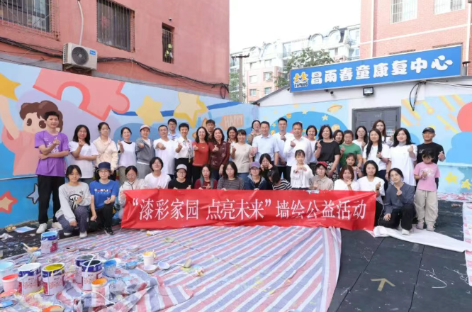 9月20日,北京市昌平区昌雨春童康复中心内欢声笑语不断。中国建材“善建”志愿服务队、北新建材团委“青春北新”志愿者服务总队、清华大学紫荆教育基金旗下“粉刷匠”工作室,在此开展“漆彩家园 点亮未来”墙绘公益活动,用色彩与爱心为特殊儿童打造了一片专属的童话天地。