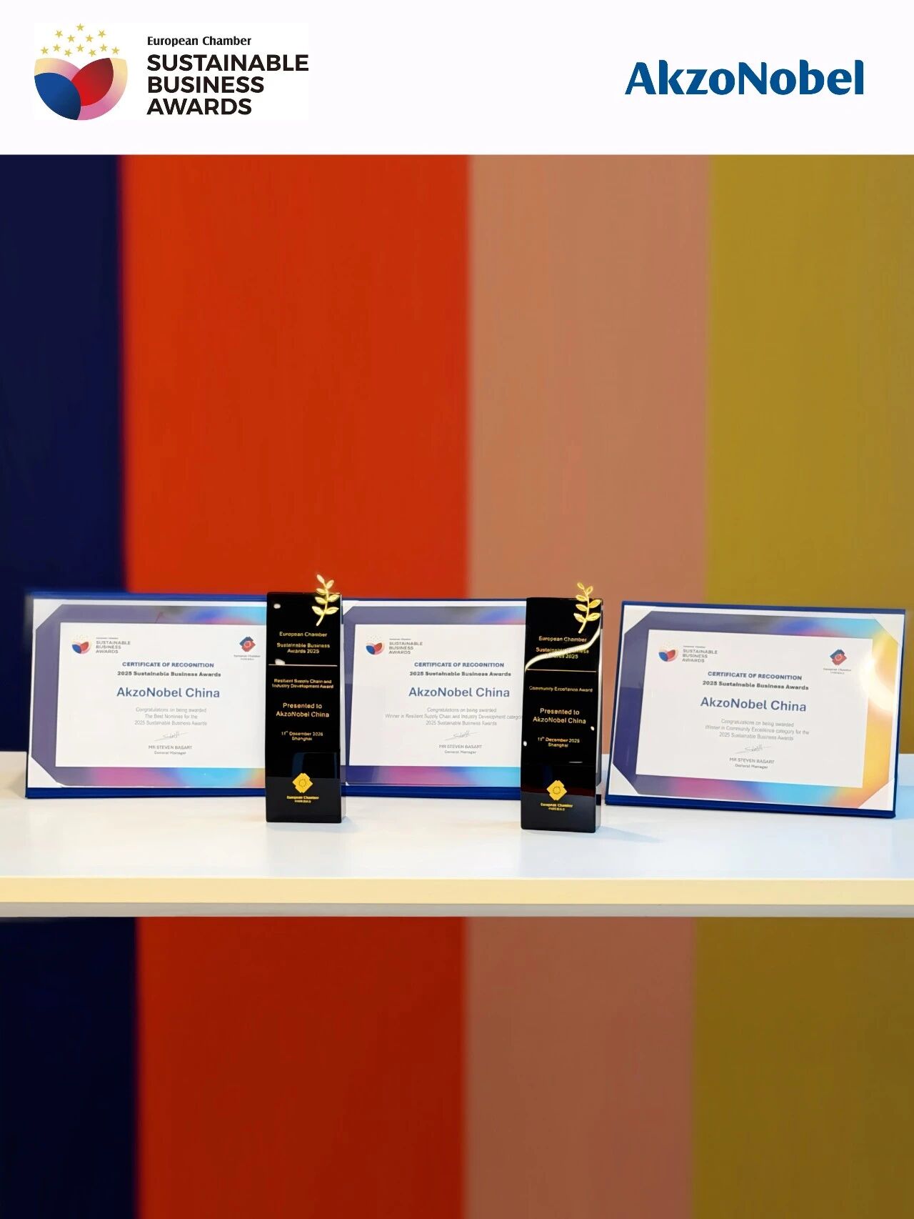 三项提名,两项大奖 | 阿克苏诺贝尔揽获中国欧盟商会“可持续商业奖项”