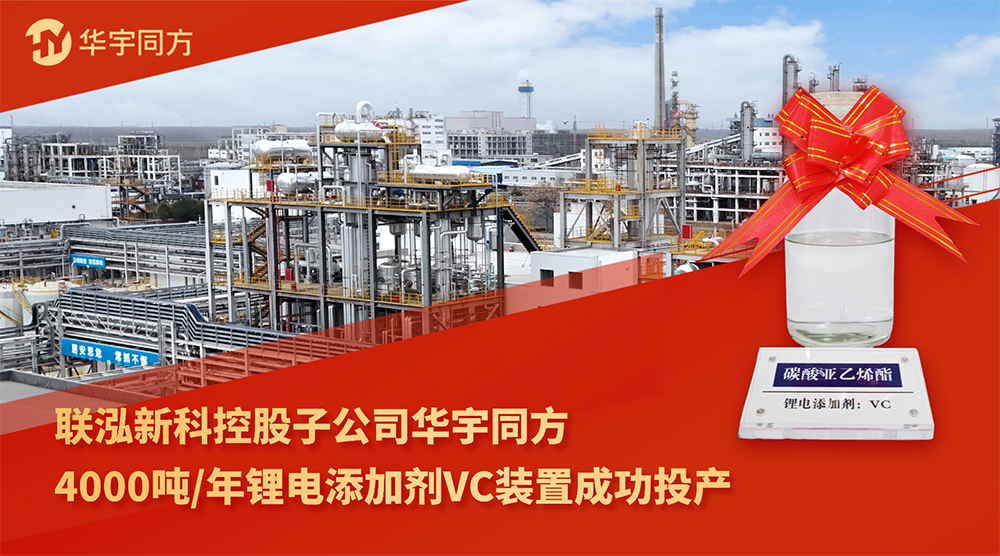 联泓新科控股子公司华宇同方在山东省济宁市汶上化工产业园投资建设的4000吨/年锂电添加剂碳酸亚乙烯酯(VC)装置成功投产