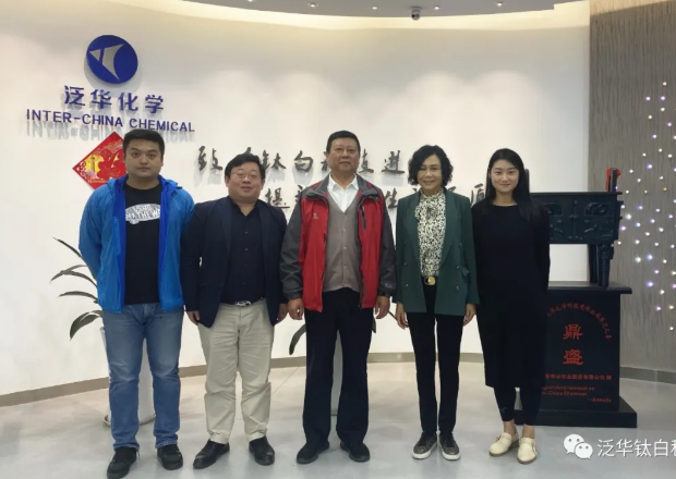 4月21日贵州胜威福全化工有限公司董事长赵磊、销售副总马磊、钛白销售经理要温好一行三人来到江苏泛华化学科技有限公司,就双方合作及钛白粉行业、企业发展进行交流,受到倪晓光董事长、采购部的热情欢迎。