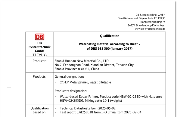 2025年10月17日,华豹公司传来重磅捷报!以技术中心主任工程师王铎为首的技术团队自主研发的水性漆,凭借卓越的性能,成功通过严苛的德国DB认证检测