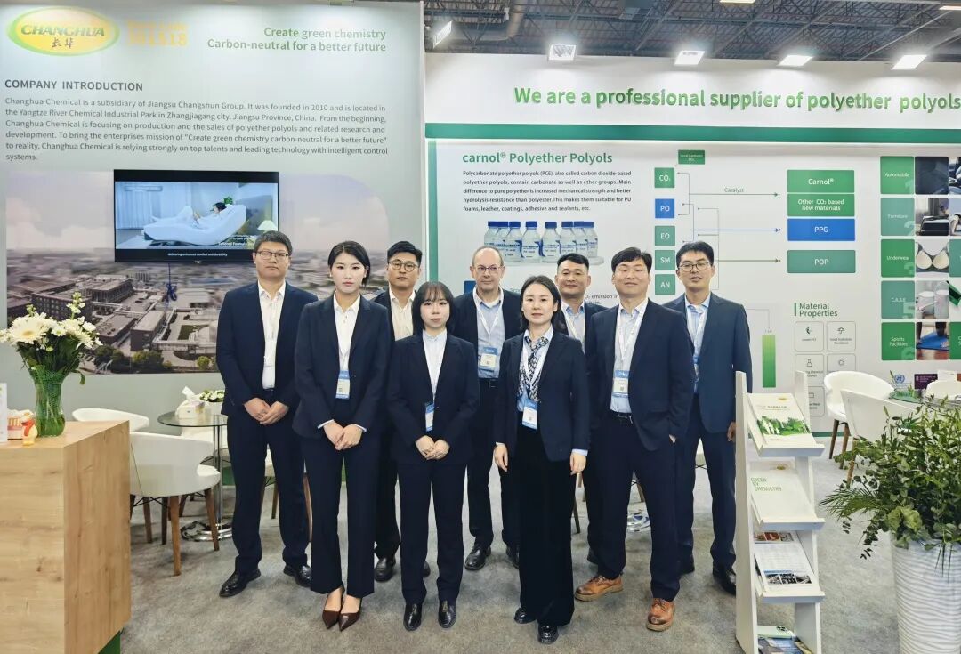长华化学携多种聚氨酯创新材料亮相展会,重点展示了包括二氧化碳基聚醚多元醇carnol®、Hiclaim®系列聚醚、生物基聚醚、超洁净系列聚醚在内的多款绿色材料,吸引了大量与会者的驻足关注与深度交流。