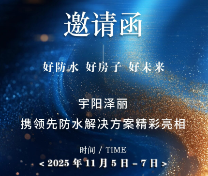 宇阳泽丽诚邀各界朋友共赴2025中国防水展,于金秋时节共探建筑防水领域前沿科技与创新路径。