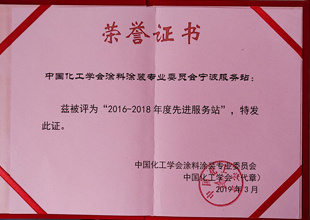 中国化工学会涂料涂装专业委员会宁波服务站被评为“2016-2018年度先进服务站”。吴晓明秘书长被评为中国化工学会涂料涂装专业委员会“2016-2018年度先进学会工作者”。