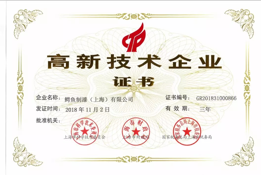 鳄鱼漆再获国家高新技术企业认证