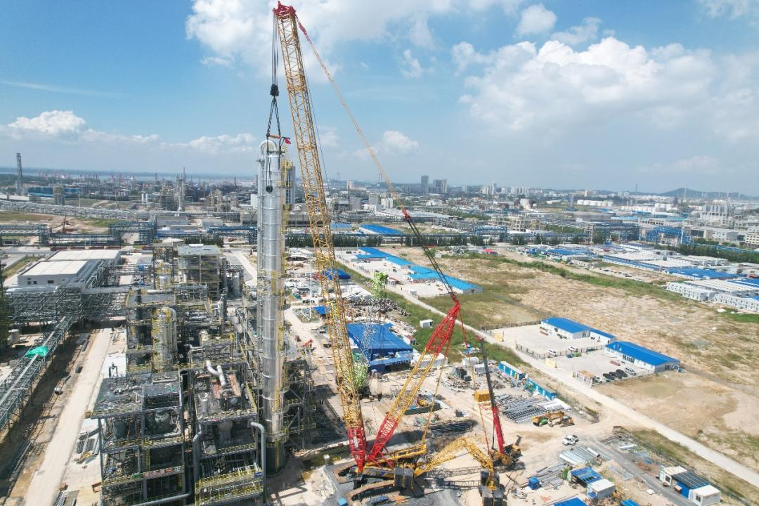 广西华谊新材料公司三期项目大件设备吊装取得重要进展