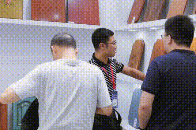 这次参展的厂商品质优异,琳琅满目。宜高君远远看见有一个摊位被咨询的人群挤得水泄不通,摊位前面有个木桶,浸泡了几个板材,还有整齐排列的宣传画册。究竟有什么神秘之处?我们也过去一探究竟吧!