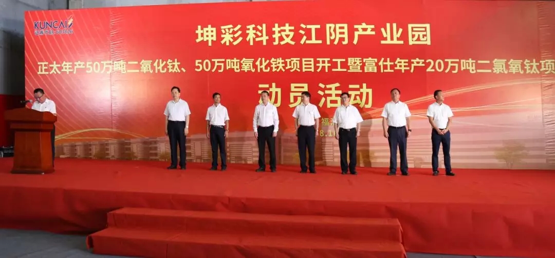 慧正资讯:2019年8月16日,坤彩科技江阴产业园正太年产50万吨二氧化钛、50万吨氧化铁项目开工暨富仕年产20万吨二氯氧钛项目正式投产动员活动在福州江阴港城经济区隆重举行!