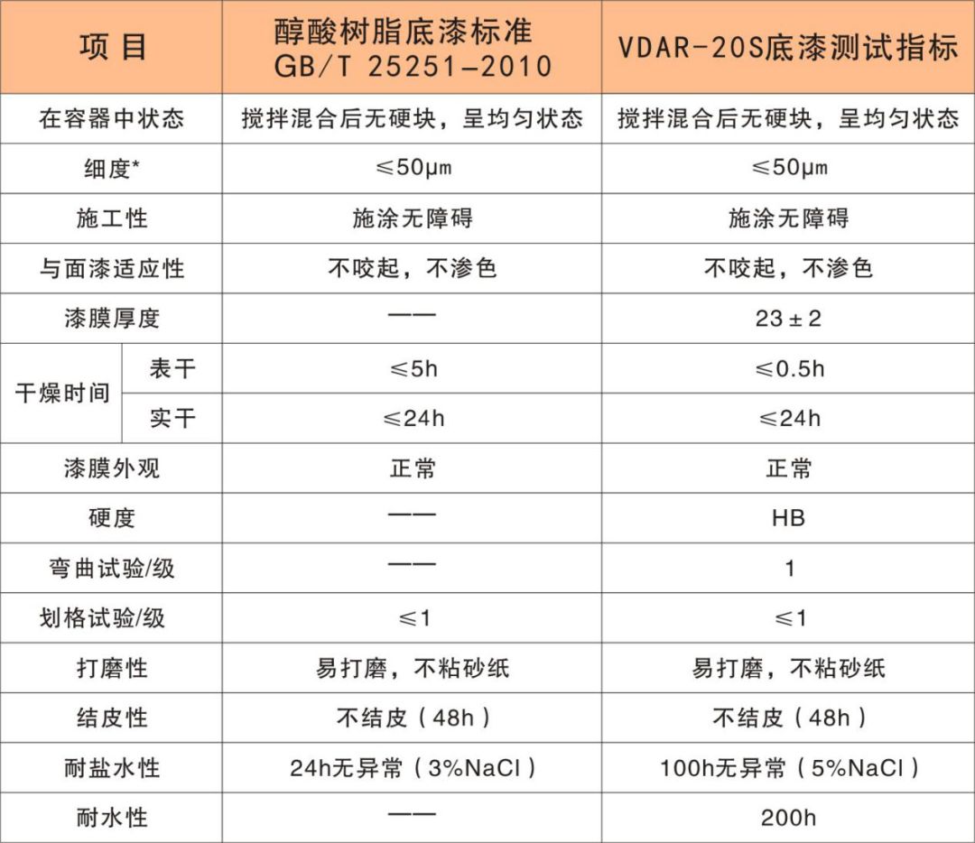 以表2及表3为制漆配方,配制的VDAR-20S底漆性能指标效果较好(见表4)。可以看出,VDAR-20S底漆的综合性能可以满足一般防腐涂料的要求,能够达到醇酸底漆的防腐性能标准(见GB/T 25251-2010)。因此,VDAR-20S乳液完全可以替代醇酸树脂,用于建筑钢结构、公路护栏等防腐底漆,而且更加环保、安全。