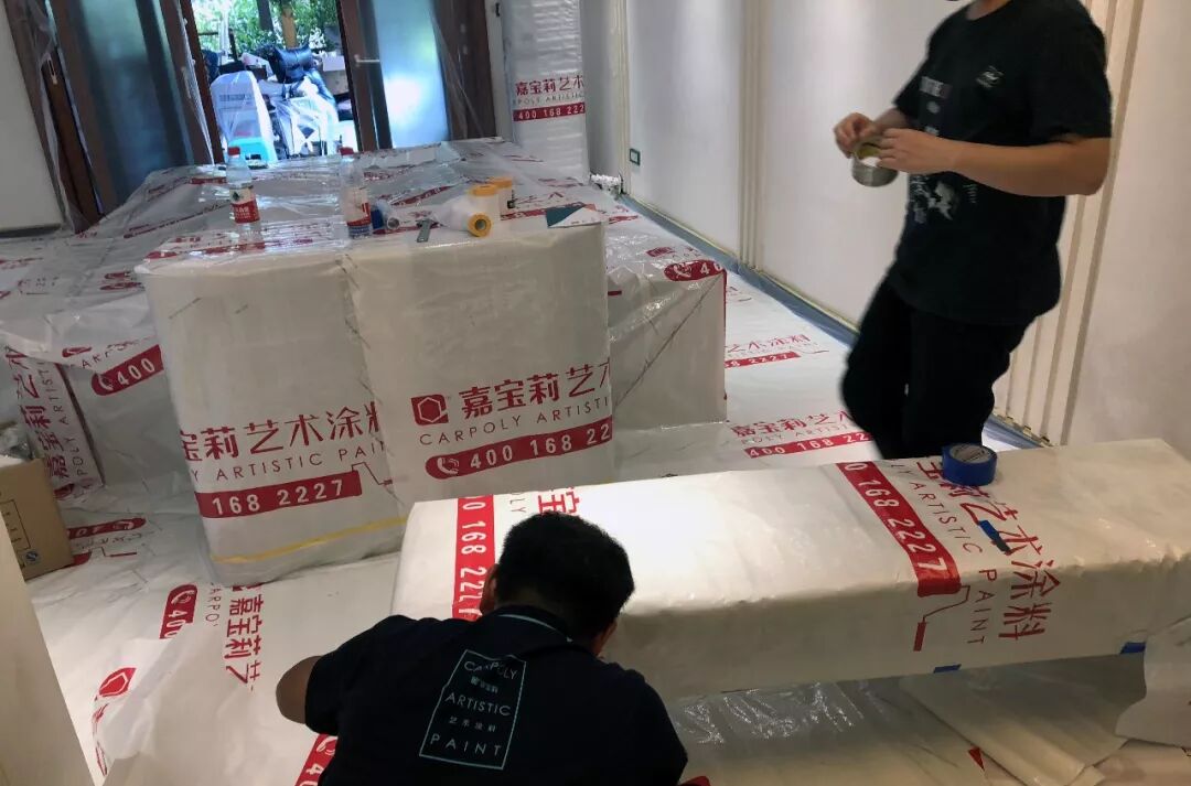 最后,任小姐同意全屋焕新,统一做嘉宝莉艺术涂料的三色金效果。