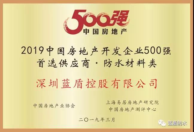 数据显示,在2019中国房地产开发企业500强首选防水品牌榜单中,蓝盾防水品牌首选率位居前5,这是客户对蓝盾的产品质量与服务质量的肯定。