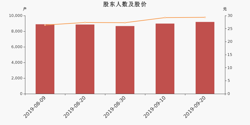 2019年8月9日至今,公司股东户数有所增长,区间涨幅为3.34%。2019年8月9日至2019年9月20日区间股价上涨11.26%。