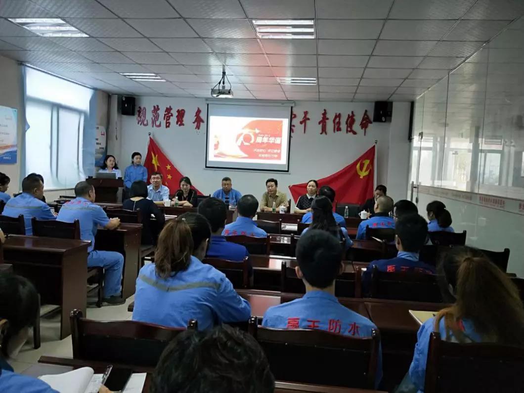 9月23日,四川禹王公司党支部召开建国70周年庆祝大会暨“不忘初心,牢记使命”主题教育动员会,大会由党支部书记王立新主持。成眉石化园区党工委副书记张彦、区委组织部常务副部长谢玉民、区两新党工委副书记康红艳、成眉石化园区党群工作局局长陈玲玲莅临指导,四川禹王生产基地全体党员职工参会。