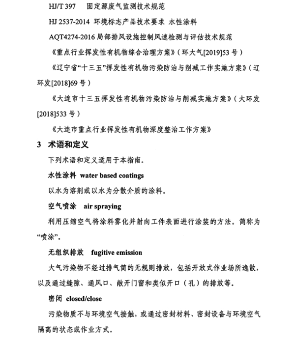 其中,大连市涂装行业挥发性有机物控制技术指南内容如下: