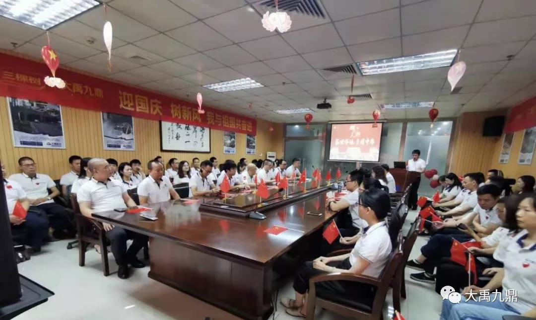 慧正资讯:9月28日,在喜迎新中国成立70周年之际,大禹九鼎总部及广东广州、广东清远、湖北孝感三大生产基地,举办了“迎国庆 树新风 我与祖国共奋进”暨大禹九鼎企业文化培训活动,为祖国庆生,为企业树魂。