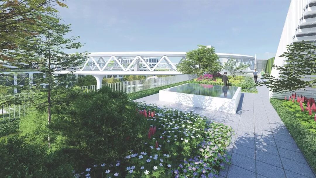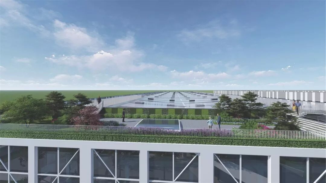 除此之外,厂房设计考虑了屋顶花园,将地面景观延续到立面,再延续到屋面,由此来打造多维景观,实现建筑与自然共生。屋顶花园也是屋顶种植防水做法的实例展示区,是产品展示的窗口。