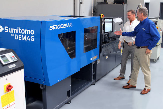 住友(SHI)德马格还宣布,它已与位于加利福尼亚州阿纳海姆的热塑性塑料分销商QTM公司合作,开设了一个新的培训和演示中心。该设施包括一个会议室、办公室和演示中心,配备了SE100EV-A全电动机器(下图)和辅助设备。