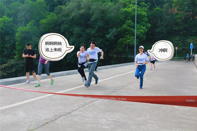 说时迟那时快,热身完毕便马上进入“备战”状态。嘉人们井然有序地等候在起跑线前,只听“哔”一声,大家一涌而出,冲啊!