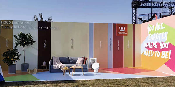 芬琳漆展台由刚刚发布的COLORNOW2020流行色盘组成,该系列色彩由北欧著名设计师与建筑师联手打造,主打色为H300 Lemonade,色彩灵感来自柠檬水,它不仅代表着前卫时尚的家居色彩流行趋势,更拥有着“假如生活让你酸,把它榨成甜美的柠檬水”的积极寓意,完美契合了本次摇滚马拉松的主题。