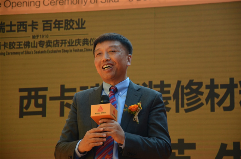 佛山裕兴达防水材料有限公司总经理谭胜良先生是德高全国亿元经销商,致辞时说到,公司将西卡胶的华南第一站设在佛山,是公司对佛山团队的信任。专卖店的落成,能成为展示西卡全方位产品和品牌的窗口,成为进一步为消费者服务的平台,让更多消费者用到环保、健康、优质的胶类产品。面对激烈的竞争市场,将不断摸索创新,坚持经营发展之道,完成西卡胶类产品能在佛山占到优势地位的使命。携手奋斗,与西卡一起成长,谭总定下了自己的目标,2019年让胶类产品做到五十万的销量,2020冲刺五百万。