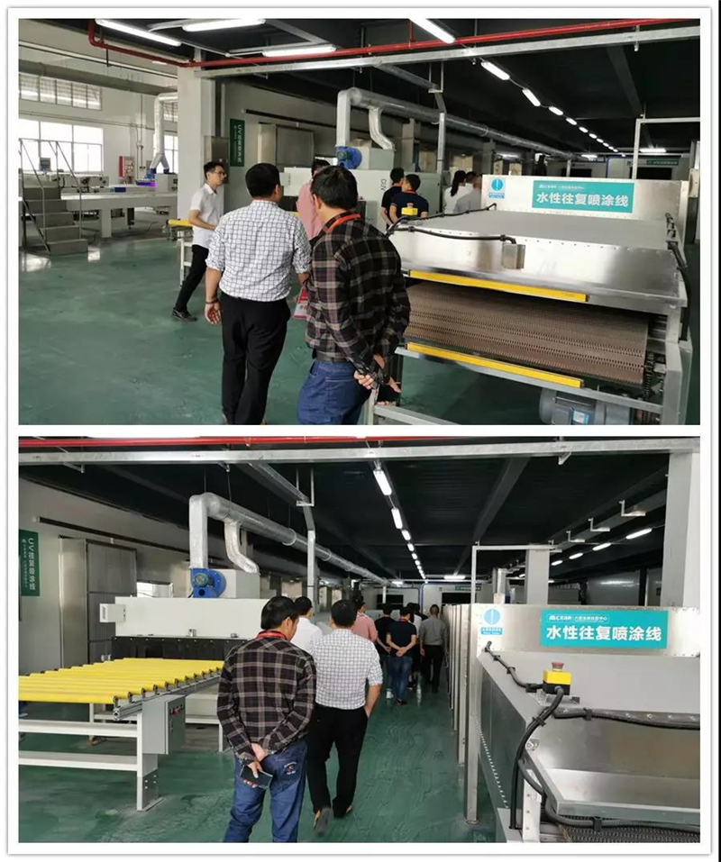 汇龙涂料家具漆事业部总经理张建飞,副总经理尹志明、蔡意高等带领嘉宾参观了汇龙六维涂装中心展示区,汇龙相关人员向参观团详细介绍了六维涂装体验中心的自动化设备、生产流程及创新实践意义,“所想即所见,所见即可实现”的涂装服务给参访人员带来了深刻印象。