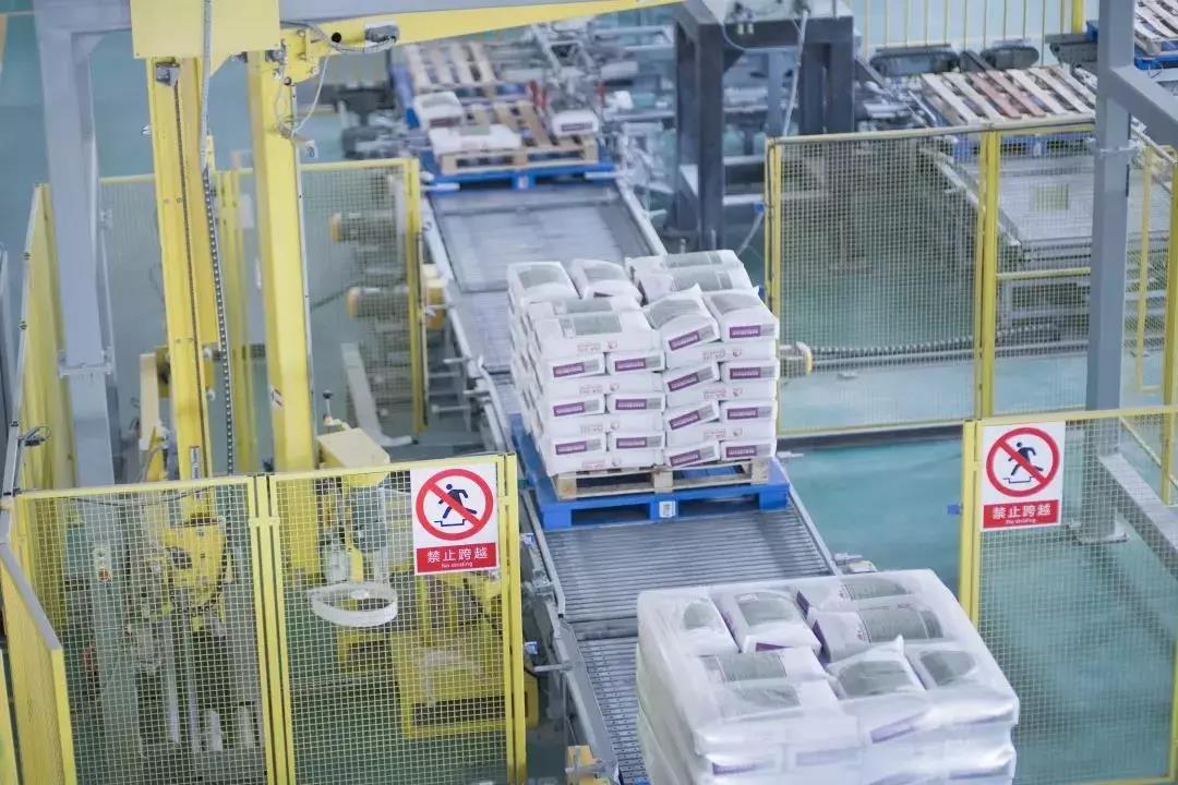 防水涂料及砂浆车间拥有三条国内领先的南方路机生产线,配备德国进口的哈沃旋转阀口包装机线和国内领先的TOM给袋式全自动包装机组合线。