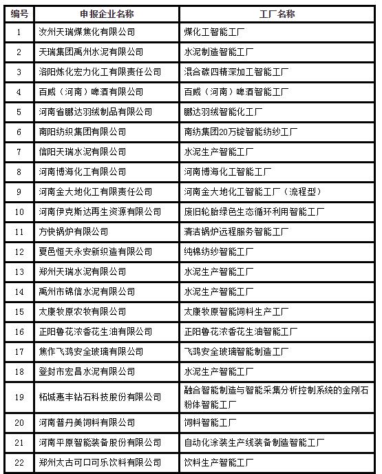 慧正资讯:11月26日,河南省工信厅官微公布2019年河南省智能车间智能工厂名单。其中,智能车间111个,智能工厂38个。