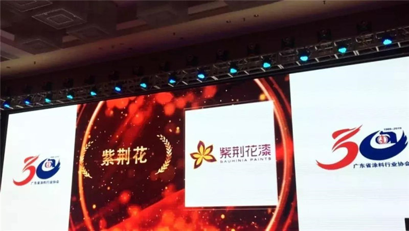 2019年5月,在广东涂料产业发展大会暨广东省涂料行业协会成立三十周年表彰大会上,紫荆花涂料喜获了“广东涂料30强企业”和“广东优秀建筑涂料品牌”两项大奖。与此同时,叶氏化工集团执行董事及副行政总裁叶钧先生还获得了“广东涂料30年优秀企业家”。