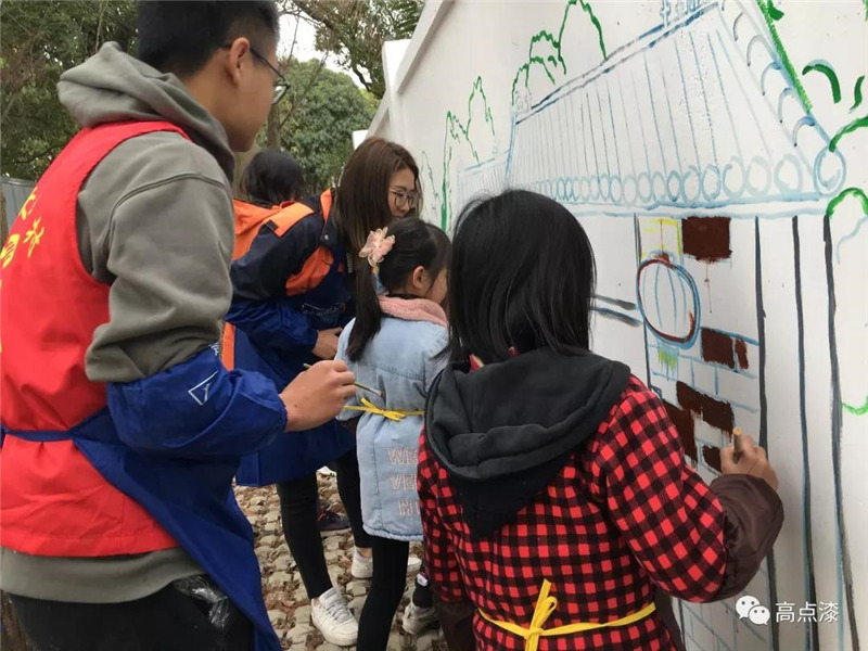 活动现场气氛热烈而融洽,志愿者和高点漆的员工们分工明确:颜料调配、涂色、补色,一切都显得井然有序,原本简单的墙面在大家的共同协作下瞬间变得生动起来,焕然一新,让人赏心悦目。