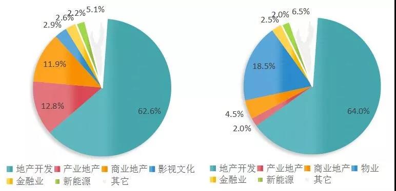 图:2018年(左)和2019年(右)重点房企收并购标的类型分布
