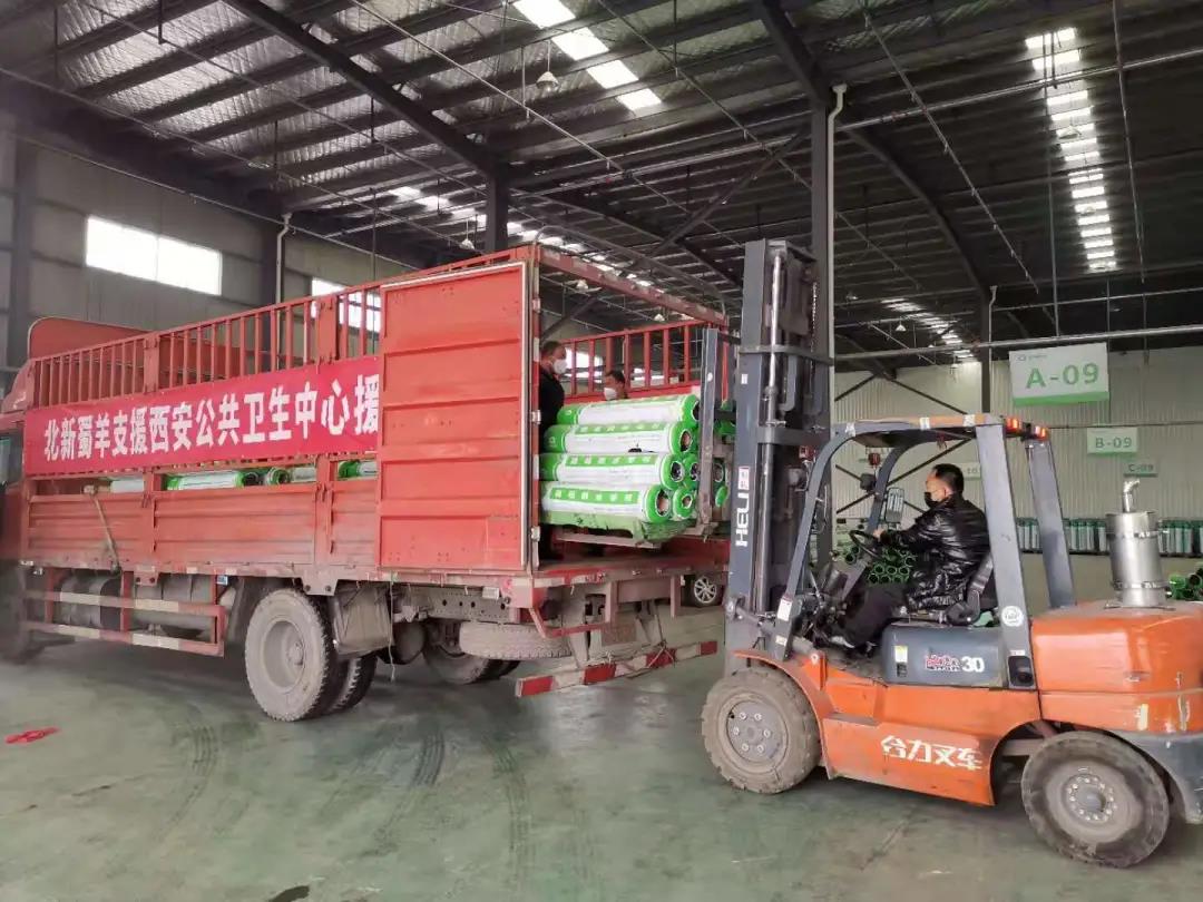 北新防水获得西安“小汤山”医院筹建信息后,第一时间到工地现场,了解到工程急需高品质防水材料以后马上组织陕西咸阳生产基地连夜发货。北新防水也是唯一一家援建西安“小汤山”医院的防水材料公司。