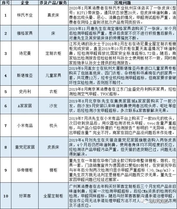新浪家居根据黑猫投诉、消费保等平台不完全统计